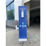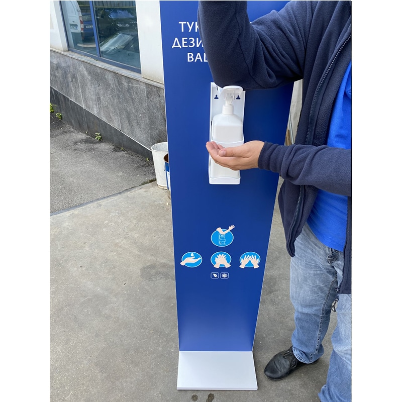 Стойка с механичен лакътен спрей диспенсър за дезинфекция