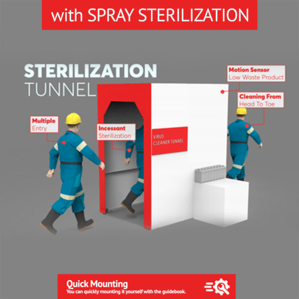 As soon as the sensors detect every person passing through the tunnel, lighting works and sterilization process begins. It’s suitable for multiple use since people don’t stop when passing through the tunnel.